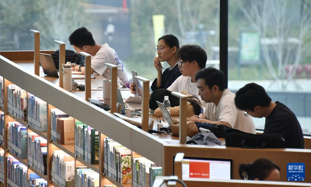 10月5日,市民在北京城市图书馆内学习。新华社记者 李欣 摄
