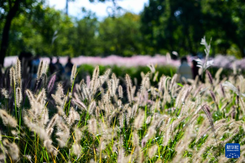 近日,位于天津市滨海新区的泰达植物资源库芊卉园的观赏草迎来最佳观赏期,狼尾草、粉黛乱子草等色彩斑斓,摇曳生姿,吸引不少游客游览拍照。