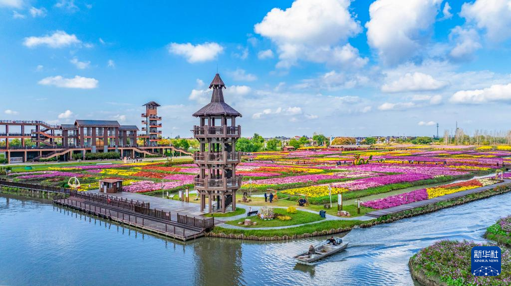 11月2日,游客在江苏省兴化市千垛景区赏菊游玩(无人机照片)。新华社发(周社根 摄)
