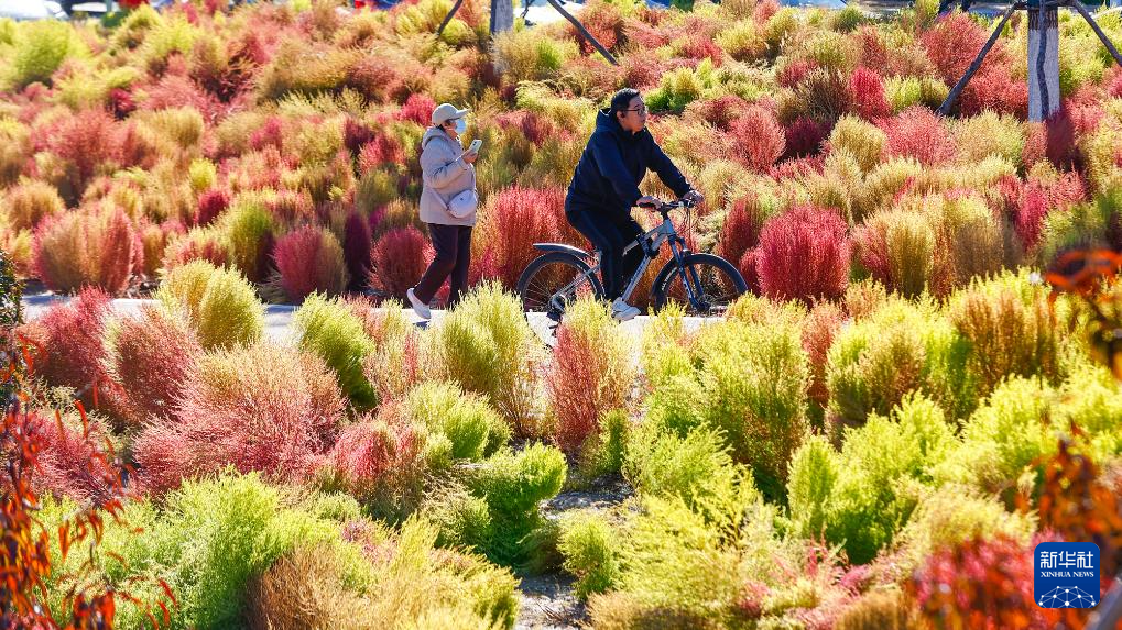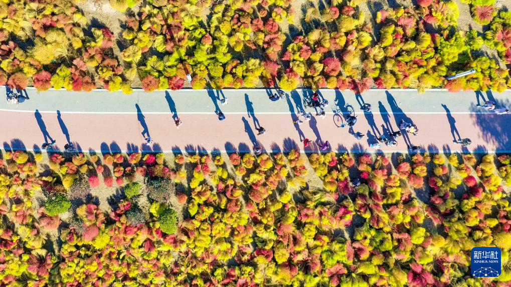 11月2日,游人在天津市滨海新区的白鹭洲公园赏秋游玩。新华社发(杜鹏辉 摄)