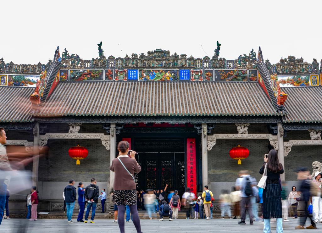 11月12日,游客在广州陈家祠前拍照、游览。新华社记者 肖恩楠 摄