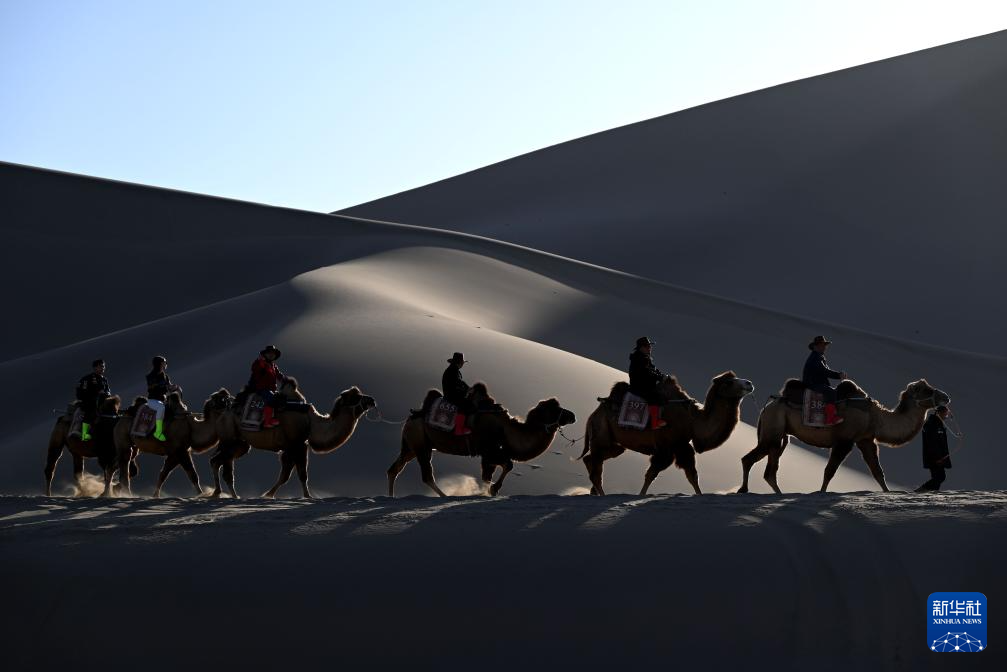 11月15日,游客在甘肃省敦煌市鸣沙山月牙泉景区游览。新华社发(张晓亮摄)