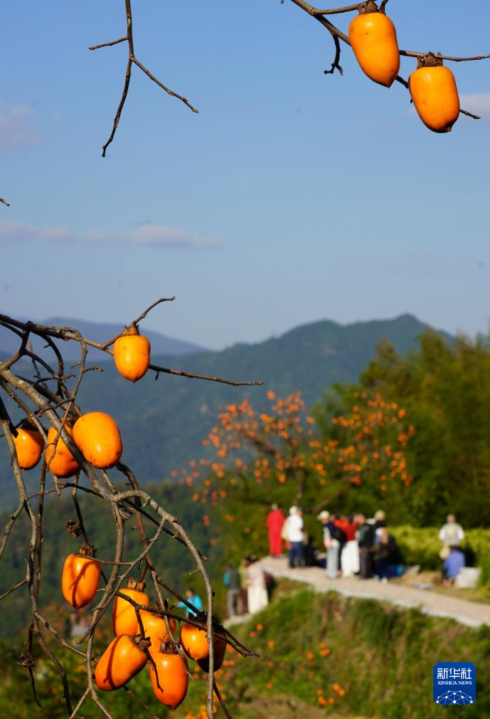 11月15日,游客在浙江省温州市永嘉县鹤盛镇东炉村游玩。新华社发(蔡宽元摄)