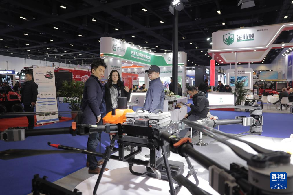 11月18日,参观者在展览现场了解一款用于紧急救援的无人机性能。新华社记者 潘旭 摄