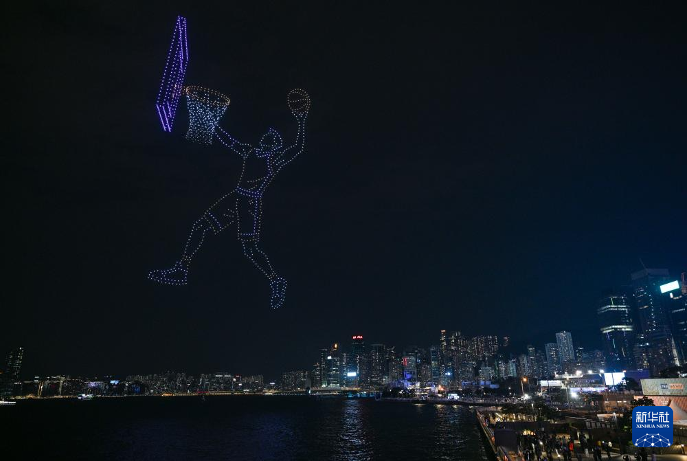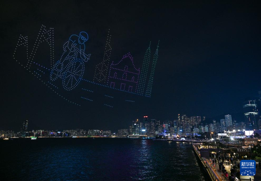 香港举行“体育力量 闪耀香江”大型无人机表演