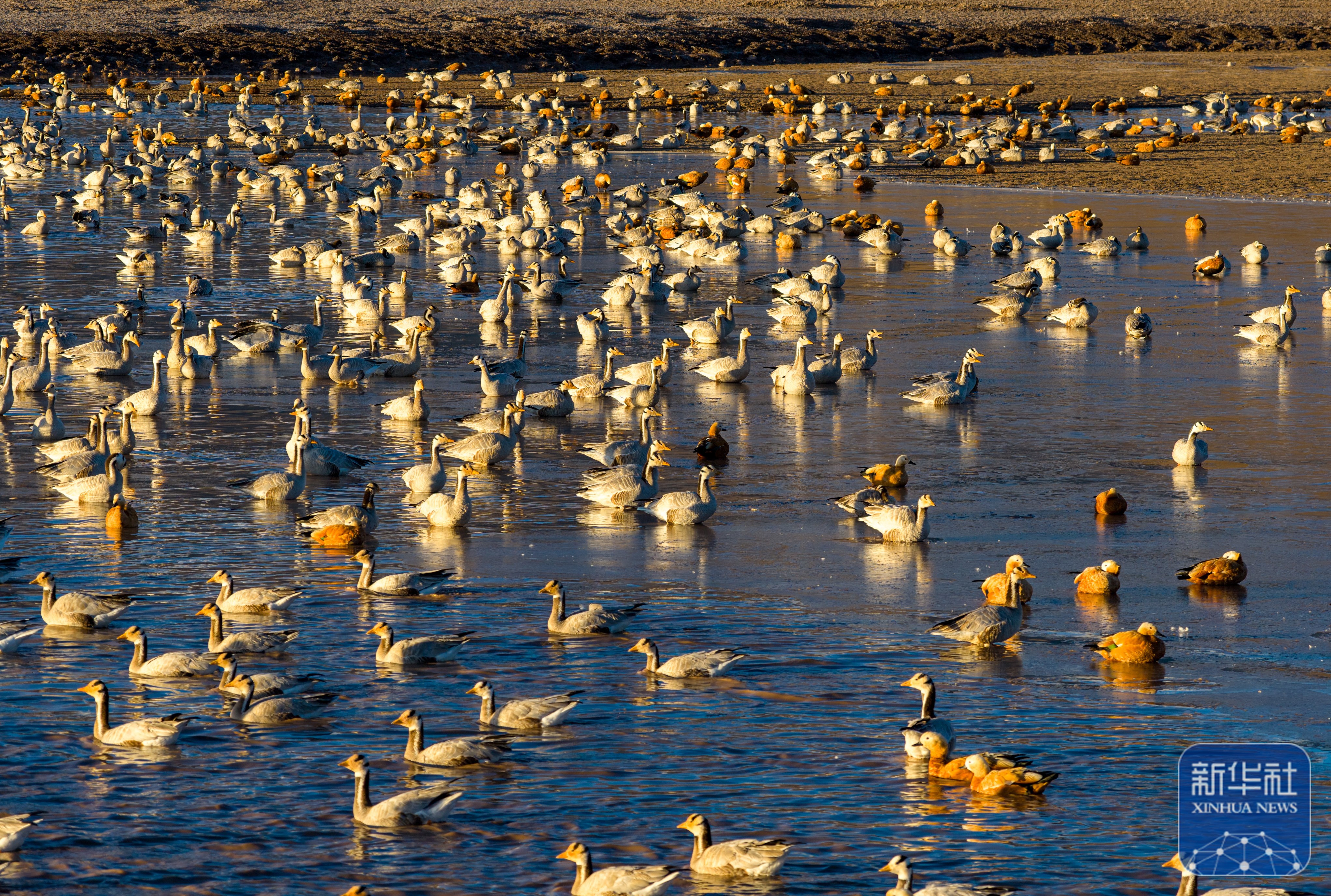 冬日时节,拉萨市林周县迎来大批越冬候鸟,黑颈鹤、斑头雁、赤麻鸭等候鸟在河谷、湖泊等地觅食、休憩。