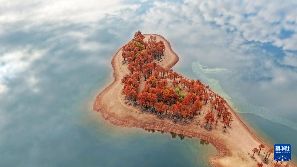 12月10日,游客在湖南省衡阳市雁峰区岳屏镇隆桥村的水杉林休闲游玩(无人机照片)。新华社发(曹正平摄)