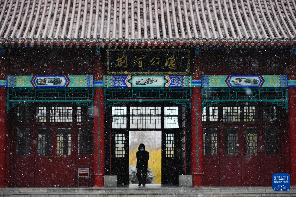 12月12日,人们在河南省沁阳市滨河公园冒雪游玩。新华社发(张新雨摄)