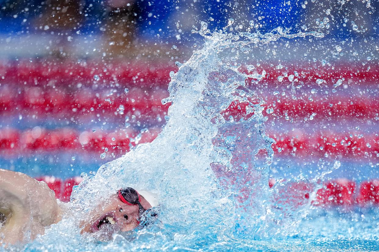 12月14日,内蒙古队第四棒选手孙宇亮在男子22-29岁组4X50米混合泳接力决赛中。比赛中孙宇亮面对落后局面奋起直追实现反超,最终内蒙古队夺得冠军。新华社记者 伍志尊 摄