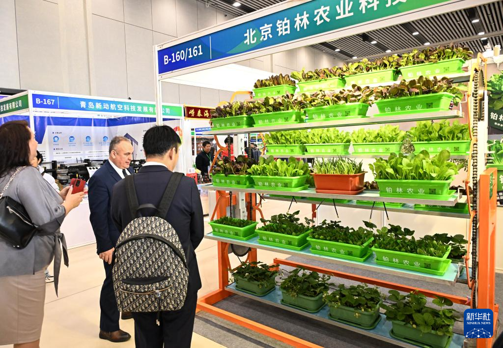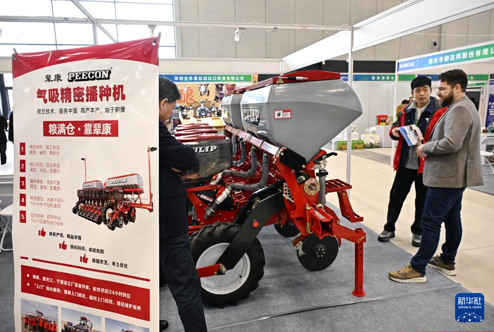 12月19日,客商在博览会上观看旋转种植设备演示。新华社记者 李紫恒 摄