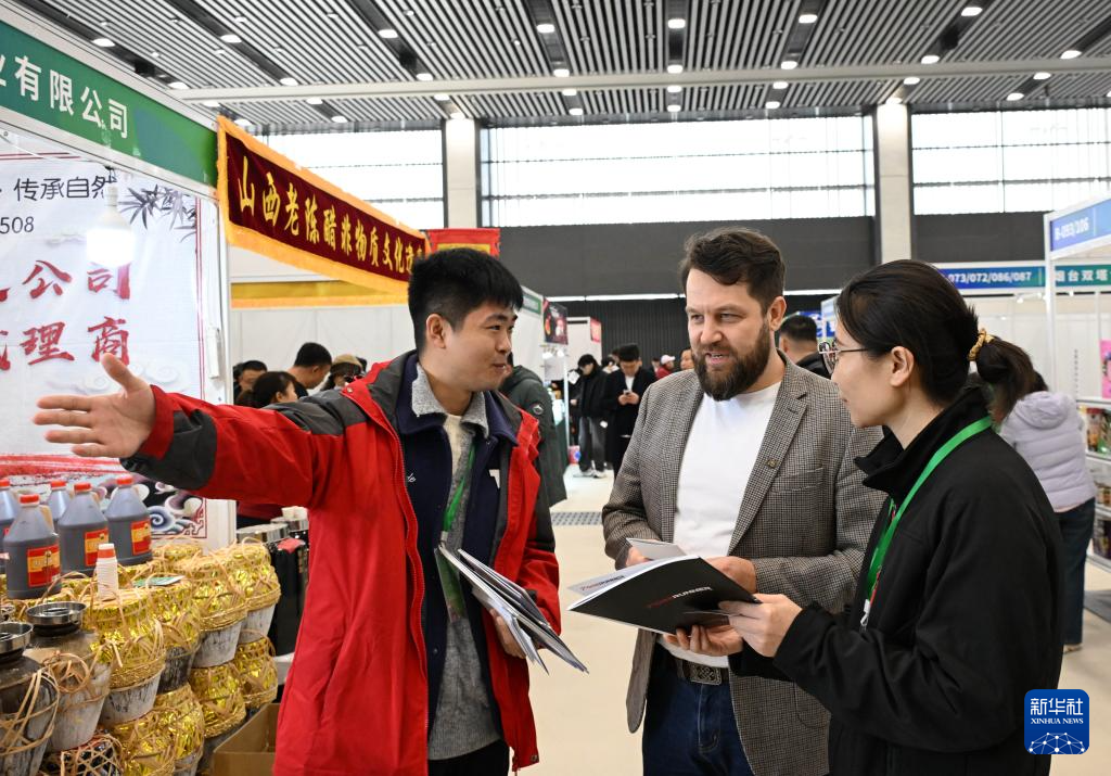 12月19日,一名客商在博览会上了解食材配料。新华社记者 李紫恒 摄