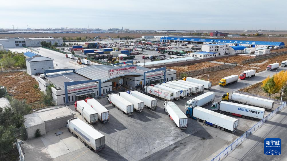 这是10月10日拍摄的内蒙古二连浩特口岸中蒙边民互市贸易区(无人机照片)。新华社发(郭鹏杰 摄)