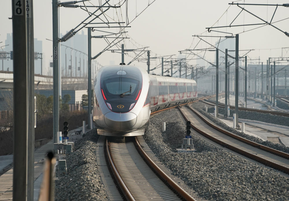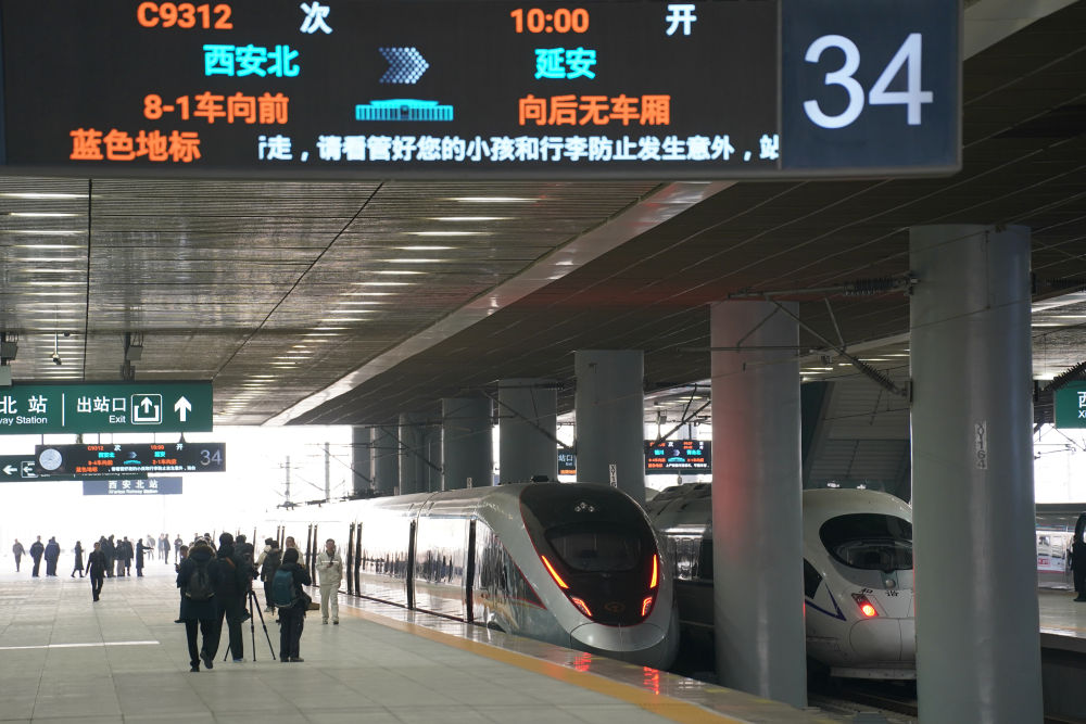 ↑ 12月26日,西安开往延安的西延高铁C9312次首发列车驶离西安北站。新华社记者 邵瑞 摄