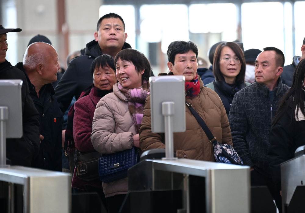 ↑ 12月26日,乘客在西安北站排队进站,准备登上西安开往延安的西延高铁C9312次首发列车。新华社记者 邵瑞 摄