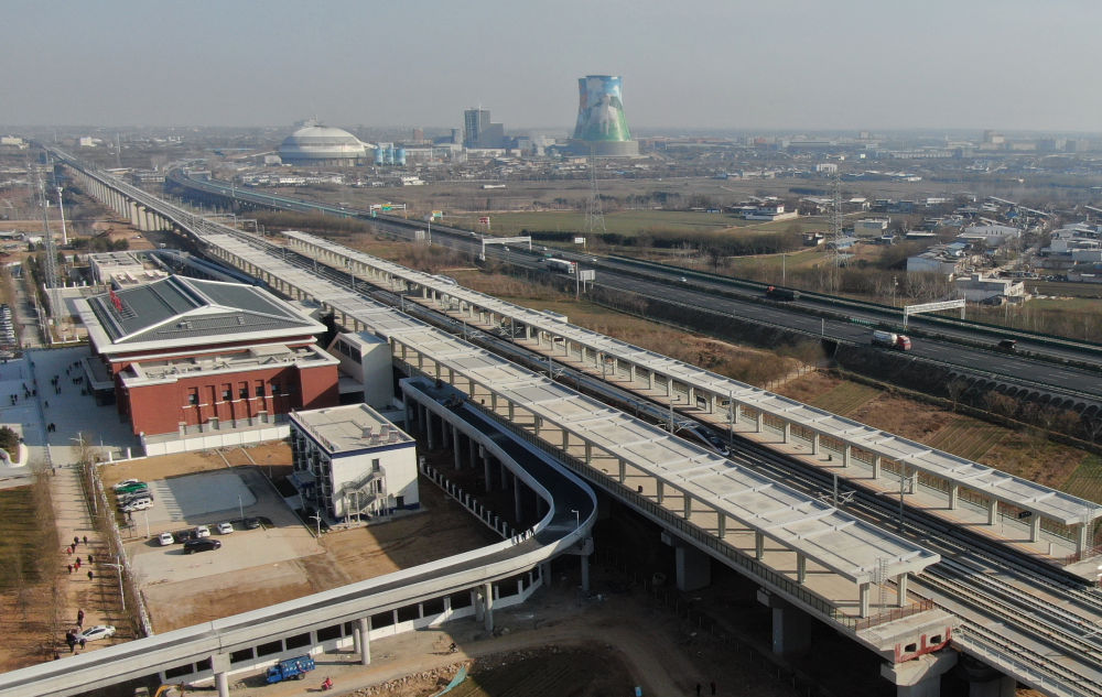 ↑ 12月26日,西安开往延安的西延高铁首发C9312次列车从富平南站驶出。新华社记者 李一博 摄