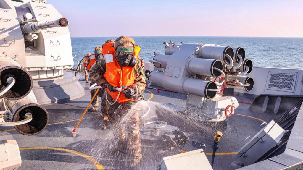 航行途中,衢州舰发现可疑目标,编队战斗警报骤然拉响,一场海上演练随即展开。