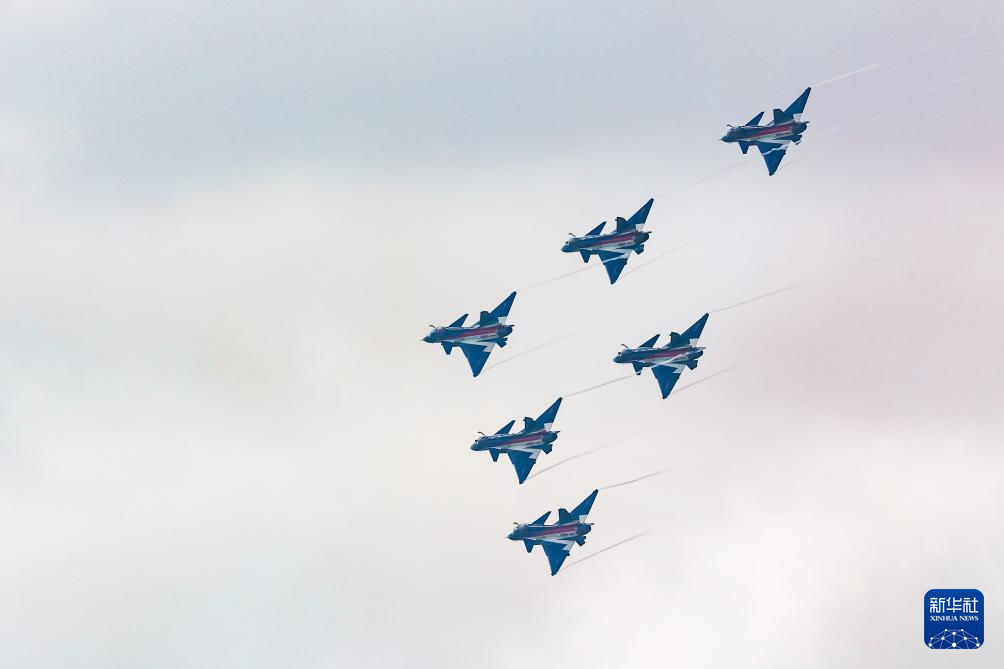 1月30日上午,中国空军八一飞行表演队在新加坡樟宜机场海面上空展开空中特技动作飞行。新华社发(朱姜海摄)