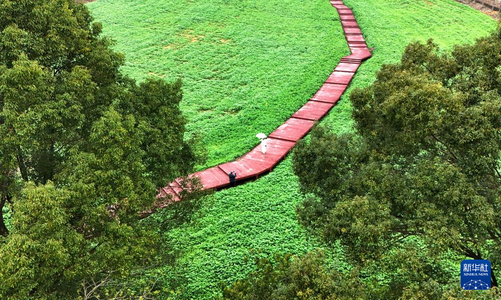 2月19日,游客在广西来宾市忻城县薰衣草庄园踏青游玩(无人机照片)。新华社发(樊绍光 摄)