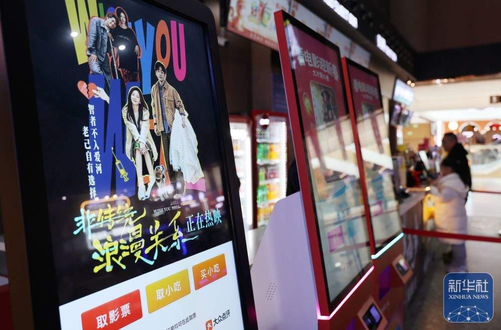 ↑ 2月20日,在天津市西青区一家电影院,观众购买电影票。新华社记者 李然 摄