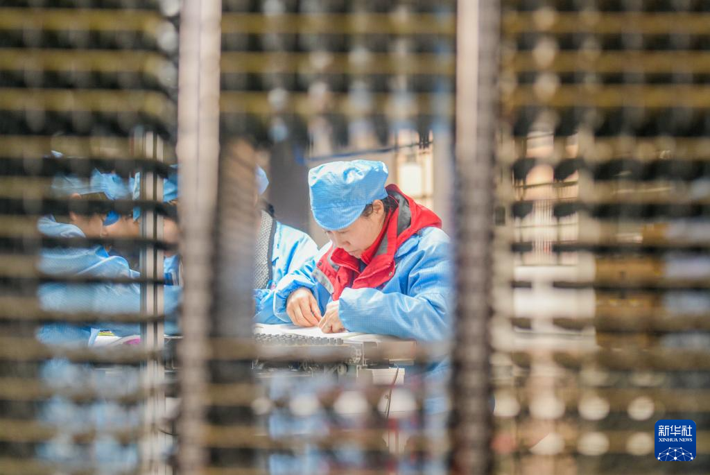 2月24日,在湖南省永州市道县高新技术产业开发区,工人在适配器生产企业流水线上工作。新华社发(蒋克青摄)