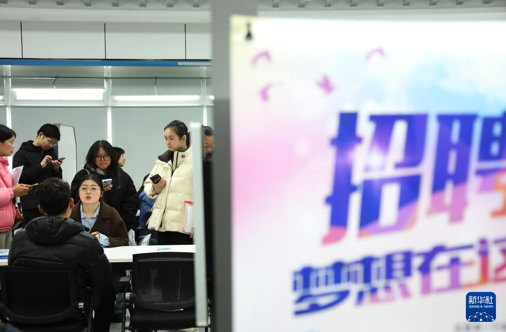 2月26日,在江苏省苏州市举行的一场新春公益招聘会上,求职者在应聘。新华社发(杭兴微摄)