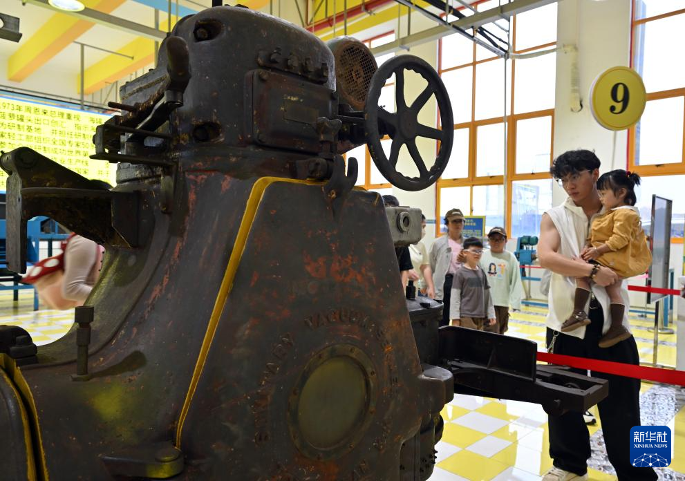 2月27日,市民、游客在椰树集团工厂参观20世纪50年代使用的真空封口机。新华社记者 郭程 摄
