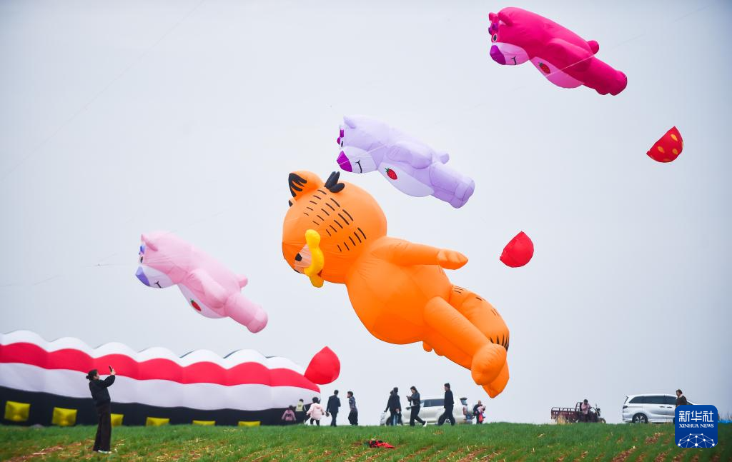 3月21日,人们在河南省洛阳市新安县南李村镇乡村风筝嘉年华活动现场欣赏造型各异的风筝。新华社发(黄政伟 摄)