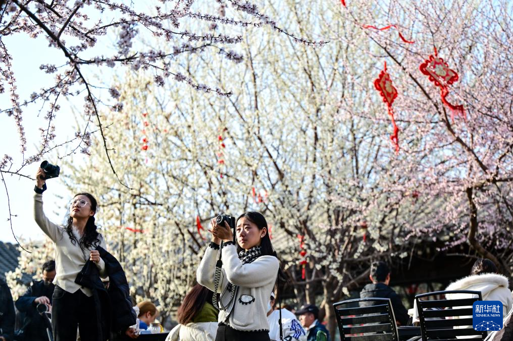 3月22日,游人在北京三里河公园拍摄。新华社记者 陈晔华 摄