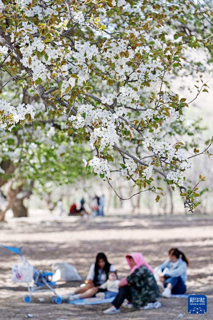 4月6日,游客在南长滩欣赏梨花。新华社记者 王鹏 摄