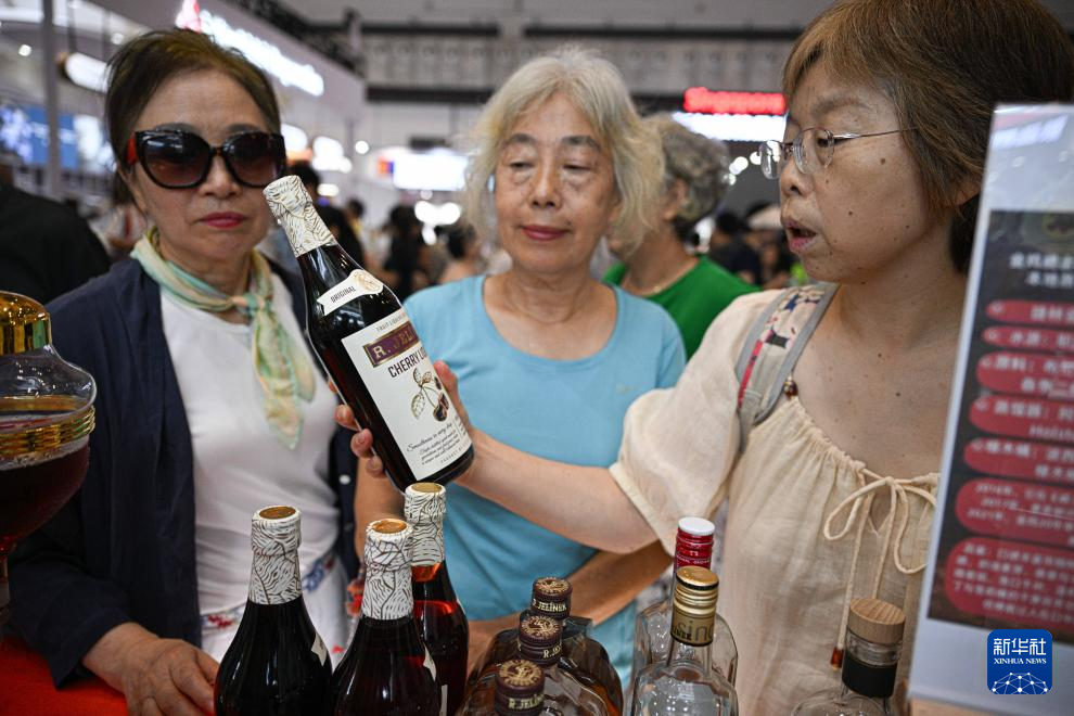 4月16日,在第六届消博会全球特色消费展区,观众选购进口商品。新华社记者 蒲晓旭 摄