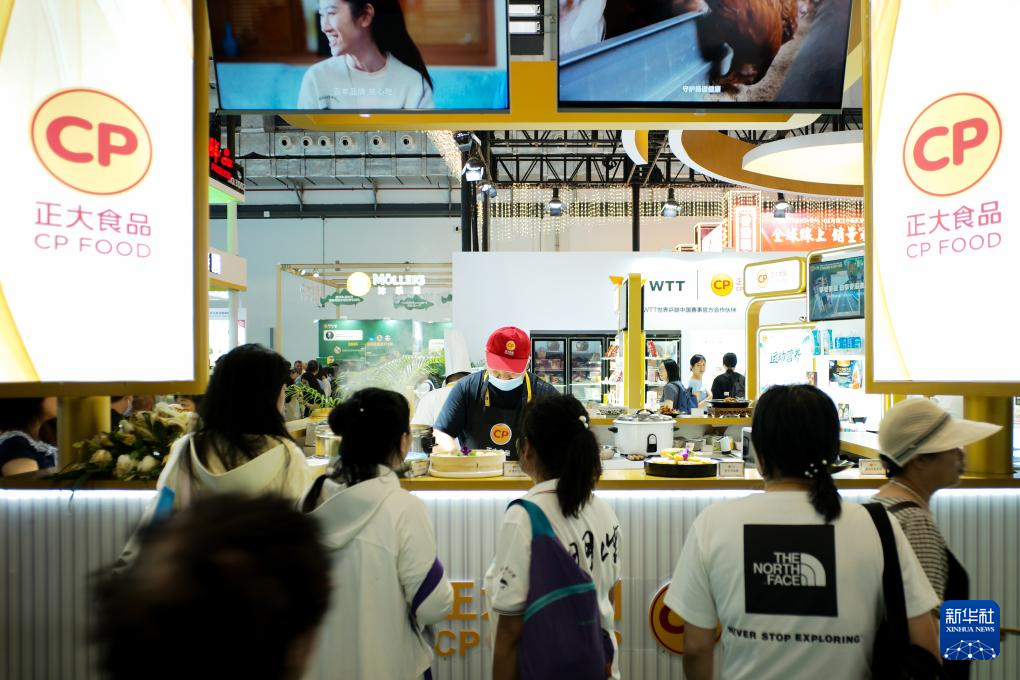 4月17日,在第六届消博会健康消费展区,人们在排队试吃。新华社记者 辛悦卫 摄