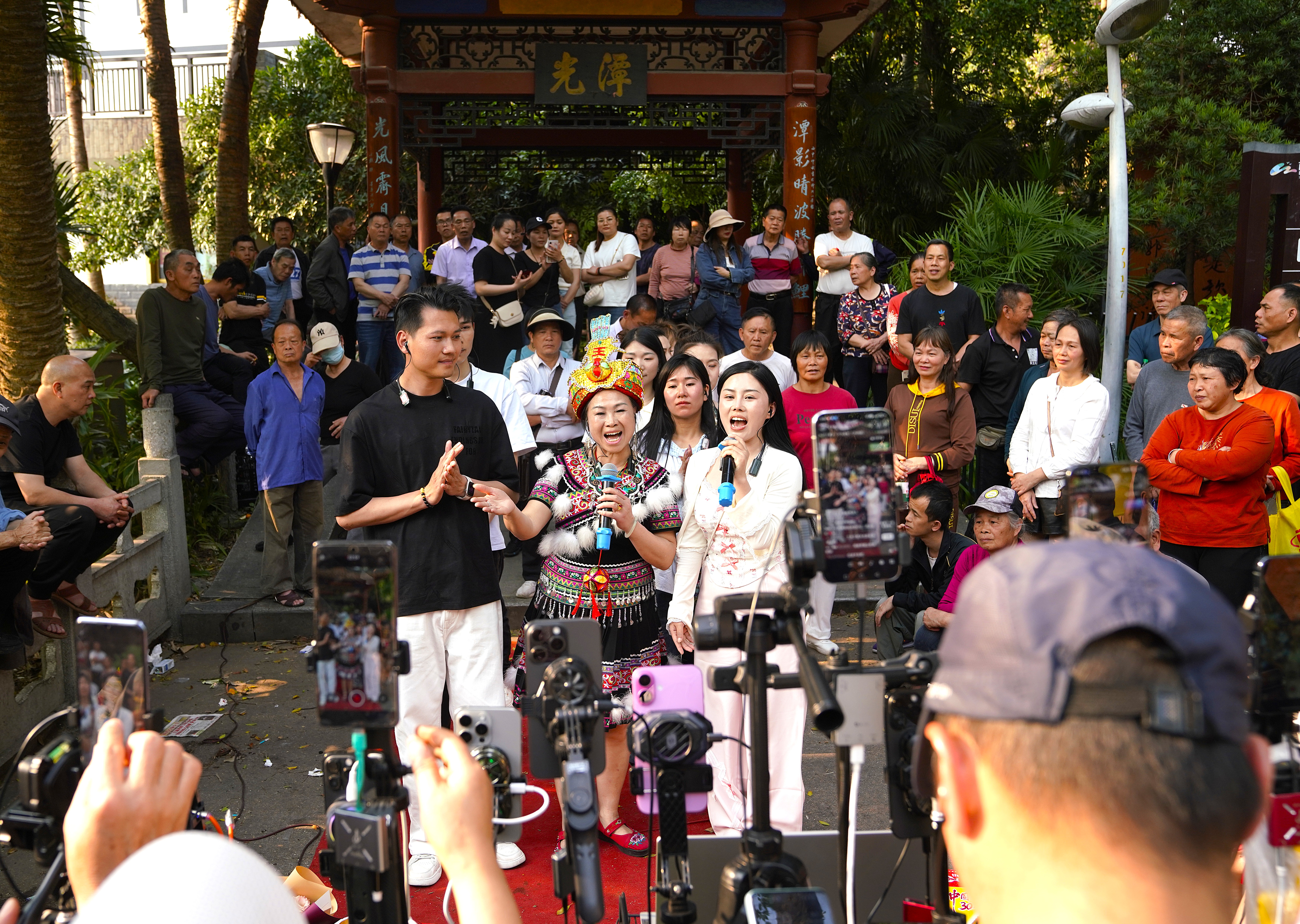 山歌台旁,“山三妹”韦莉莉调试着架子上的直播设备。这位在短视频平台拥有百万粉丝的“90后”山歌手,把古老的歌圩搬上网络,许多天南地北的网友还会与她“线上PK”。山歌的边界在开放中拓展,文化的生命在交融中延续。