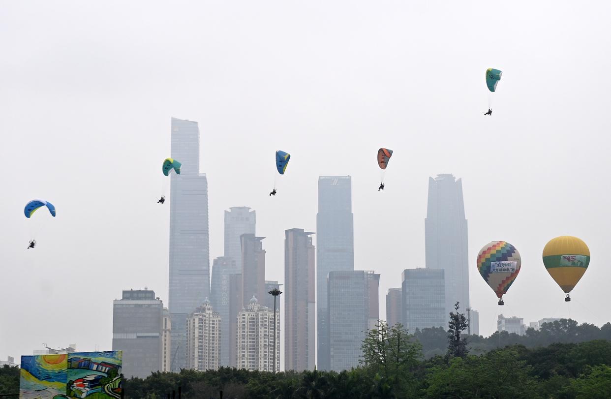 4月19日,2026年“广西三月三·八桂嘉年华”文化旅游品牌活动继续在南宁市民歌湖举行,动力伞编队在民歌湖上空表演。新华社记者 陆波岸 摄