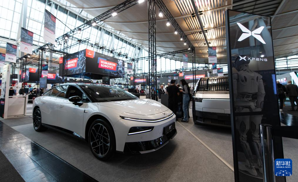 这是4月20日拍摄的德国汉诺威工业博览会小鹏汽车展区。新华社记者 张豪夫 摄
