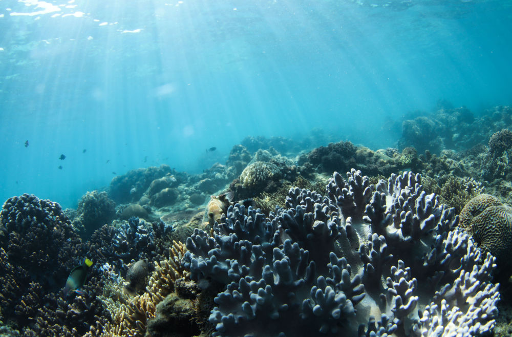 这是海南三亚蜈支洲岛海域海洋牧场内生长的珊瑚(2020年4月29日摄)。新华社记者 杨冠宇 摄