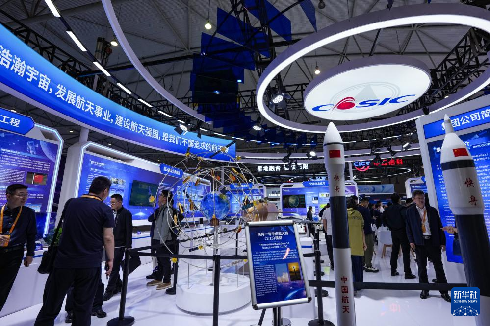 4月24日,参会嘉宾在航天科普展览上观展。新华社记者 王曦 摄