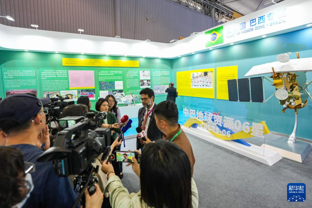 4月24日,主宾国巴西的相关负责人在接受媒体采访。新华社记者 王曦 摄