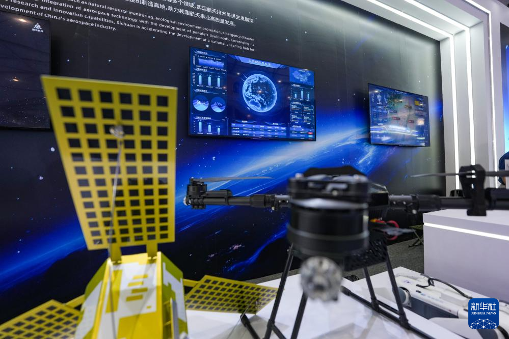 这是4月24日在航天科普展览四川航天展区上拍摄的卫星应用服务展示。新华社记者 王曦 摄