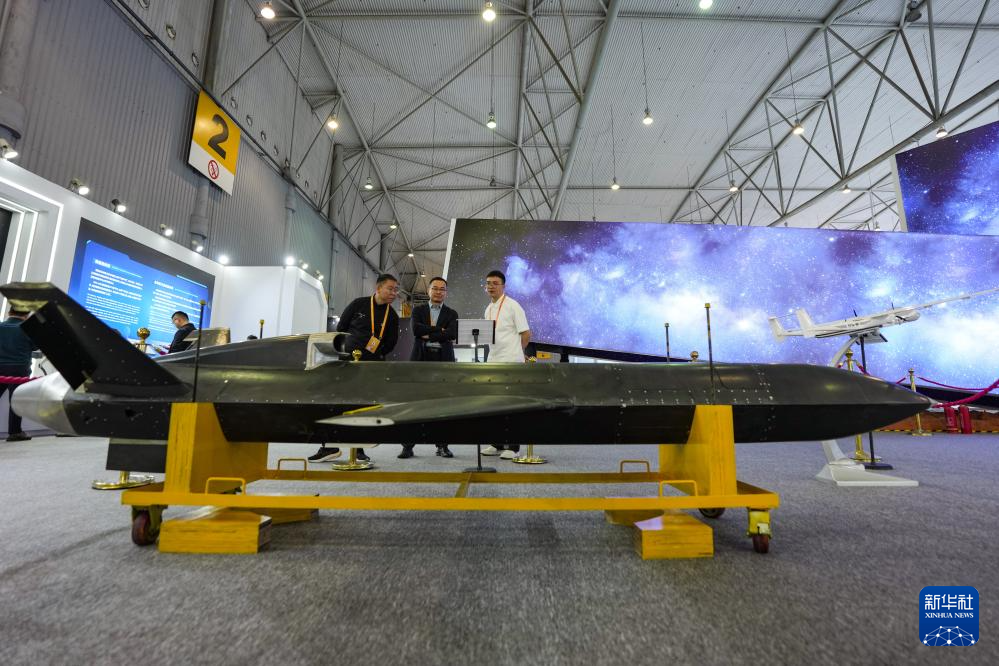 4月24日,参会嘉宾在航天科普展览四川航天展区上参观无人机展品。新华社记者 王曦 摄