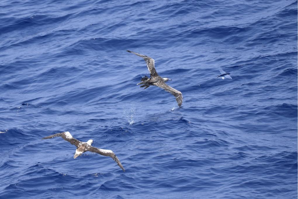 “同济”号4月18日从厦门起航以后,沿着精心设计的考察站位,开足马力,在南海的万顷波涛中日夜奔波。船头飞溅的浪花,时常惊起一群群飞鱼,吸引了许多海鸟翱翔在船边觅食捕鱼。