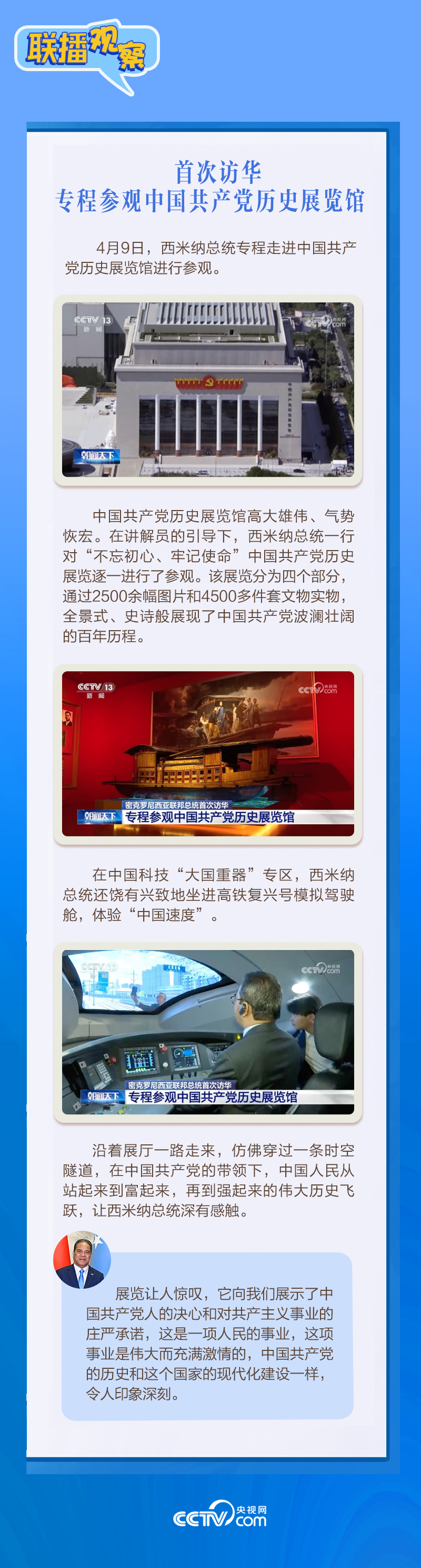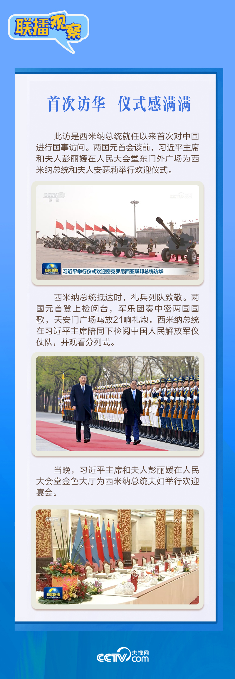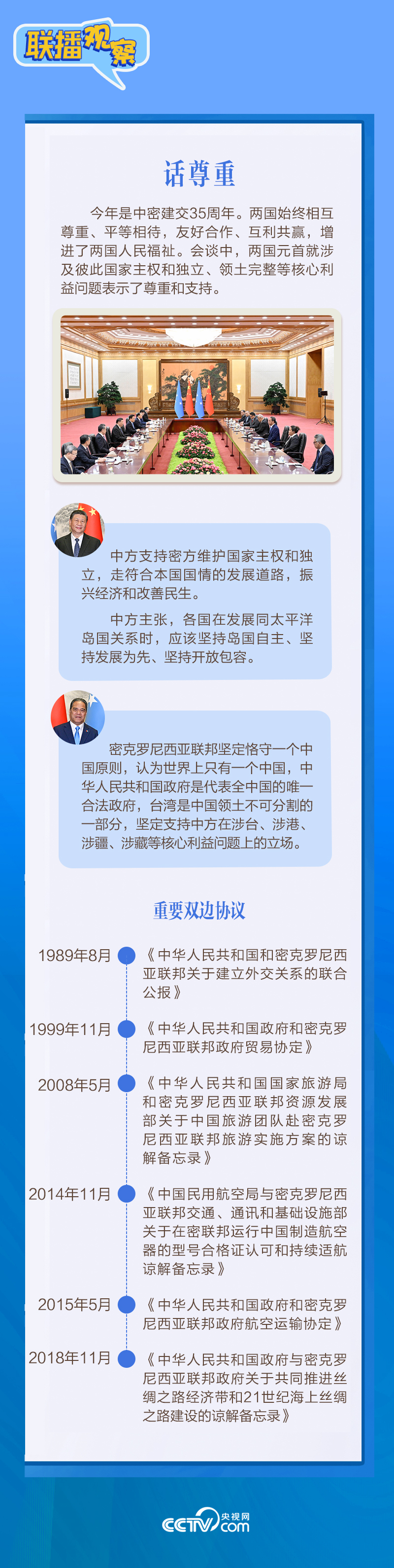 |联播+|应习近平主席邀请,密克罗尼西亚联邦总统韦斯利·西米纳于4月5日至12日对中国进行国事访问。4月9日下午,习近平主席在北京人民大会堂同西米纳总统举行会谈,就双边关系发展及共同关心的问题深入交换意见。双方会谈哪些细节值得关注?央视网《联播观察》带您了解。