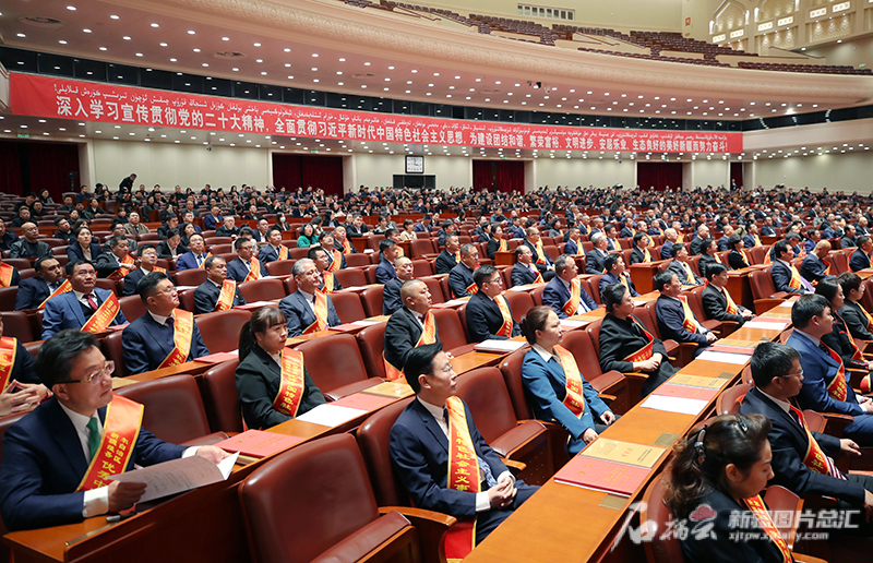 会议宣读了关于表彰第五届自治区非公有制经济人士优秀中国特色社会主义事业建设者的决定。自治区发展改革委、阿克苏地区主要负责同志和特变电工股份有限公司、新疆湘晟新材料科技有限公司、华孚时尚股份有限公司、伊犁冠通生物集团有限公司、新疆石榴精神文化传媒有限公司负责人作交流发言。