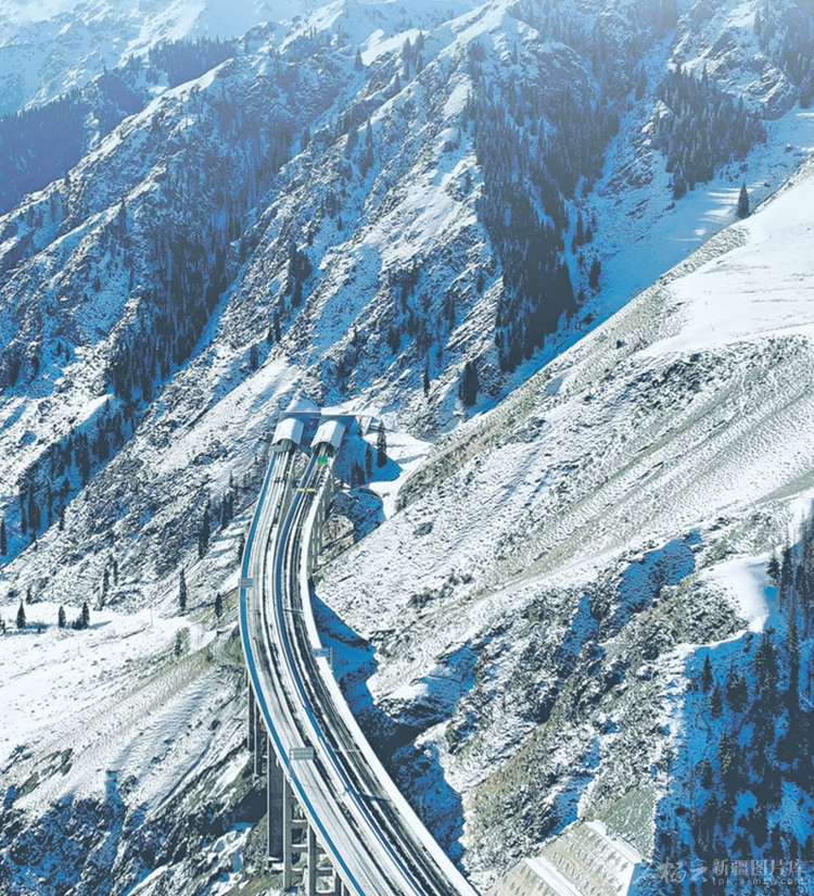 乌尉高速公路穿越天山山脉(2025年12月22日无人机摄)。本报资料图