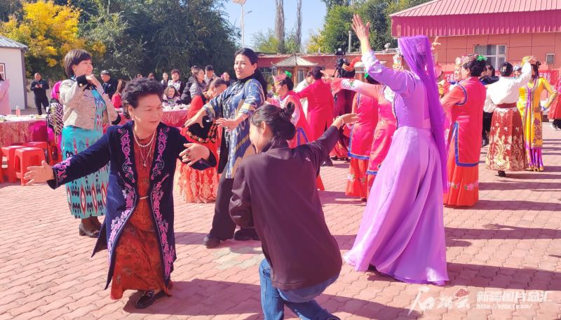 塔城市新城街道哈尔墩社区举办的第十届“邻里节 百家宴”活动上,各族群众载歌载舞。(资料图)