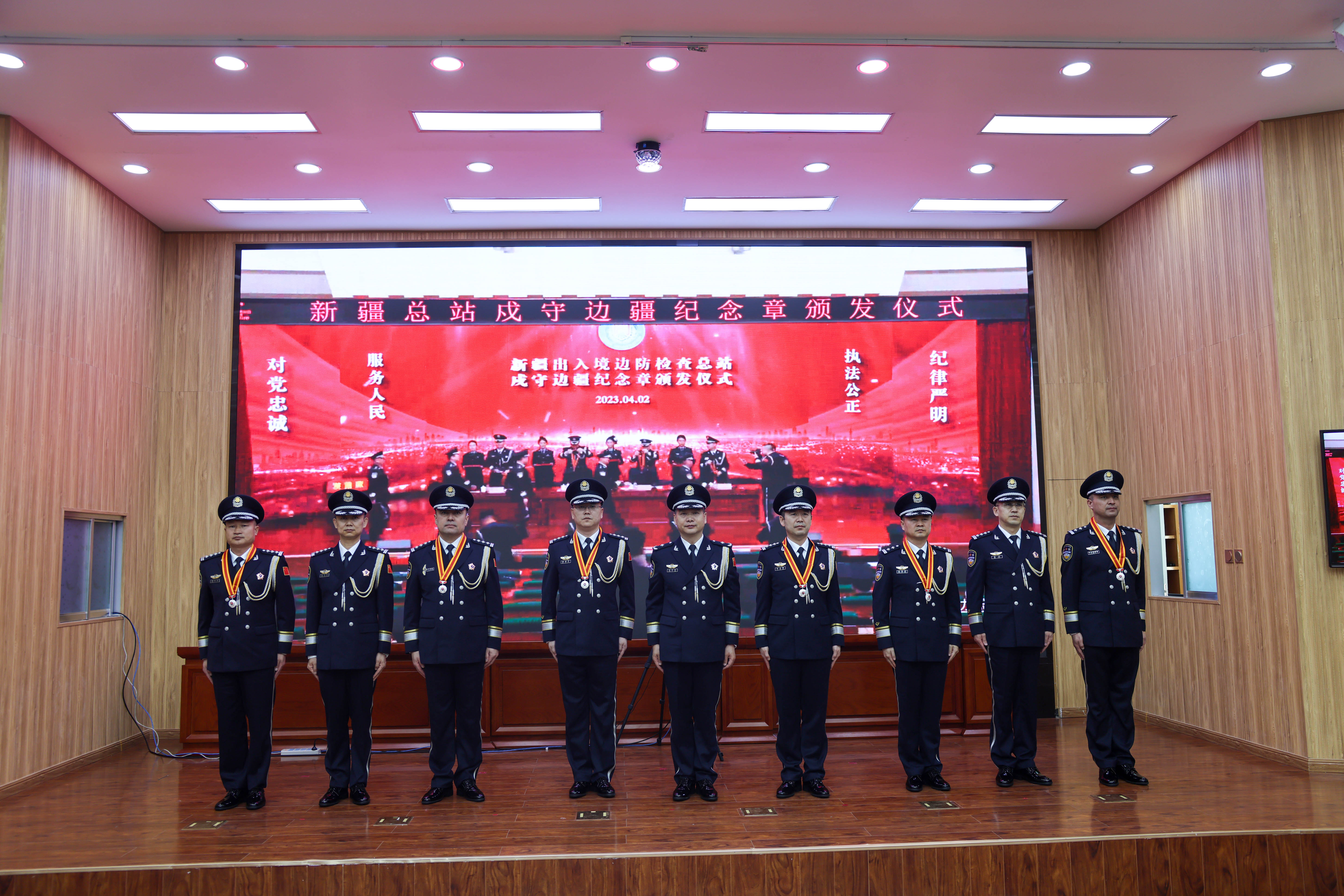 阿勒泰新闻网/阿勒泰地区融媒体中心 (实习记者 董世菊 特约记者 王友波 通讯员 王珺) 4月2日,新疆出入境边防检查总站阿勒泰边境管理支队举行戍守边疆纪念章颁发仪式,向获授戍守边疆纪念章的537名民警致以热烈祝贺。