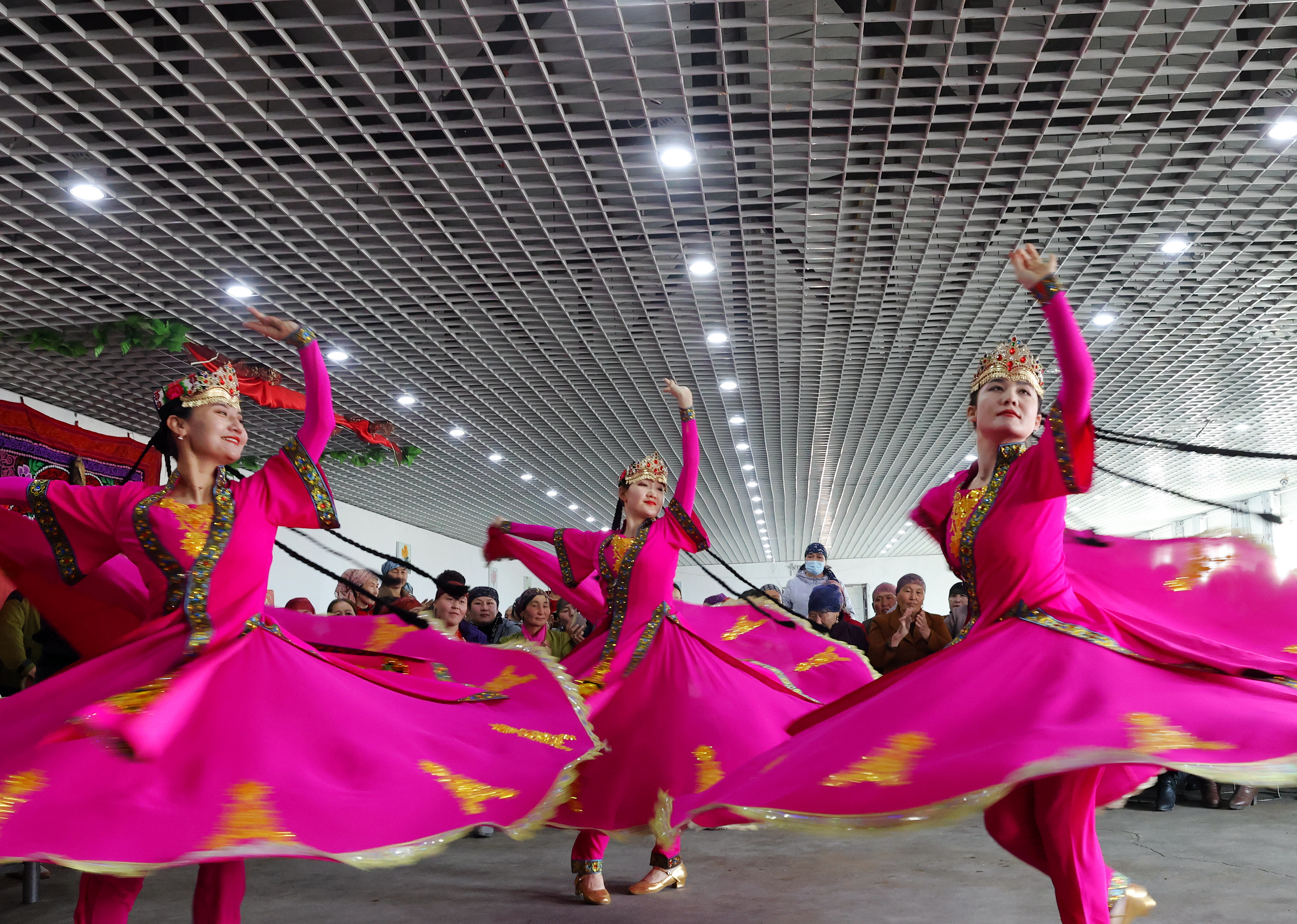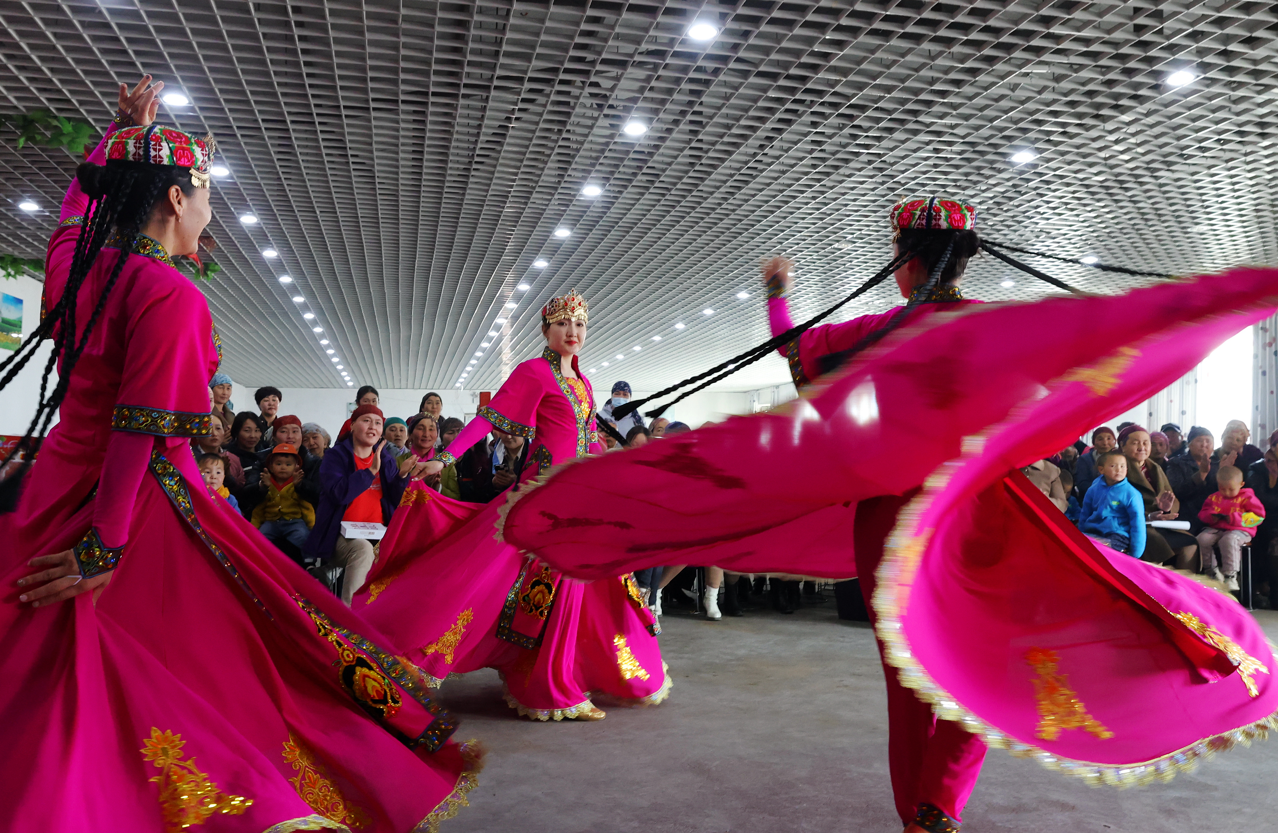 4月26日,在阿勒泰市喀拉希力克乡阿克铁列热克村文化室,牧民观赏文化节目。阿尔达克·拜斯汗 摄