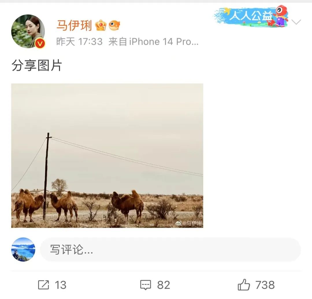 马伊琍在社交平台上分享在阿勒泰的