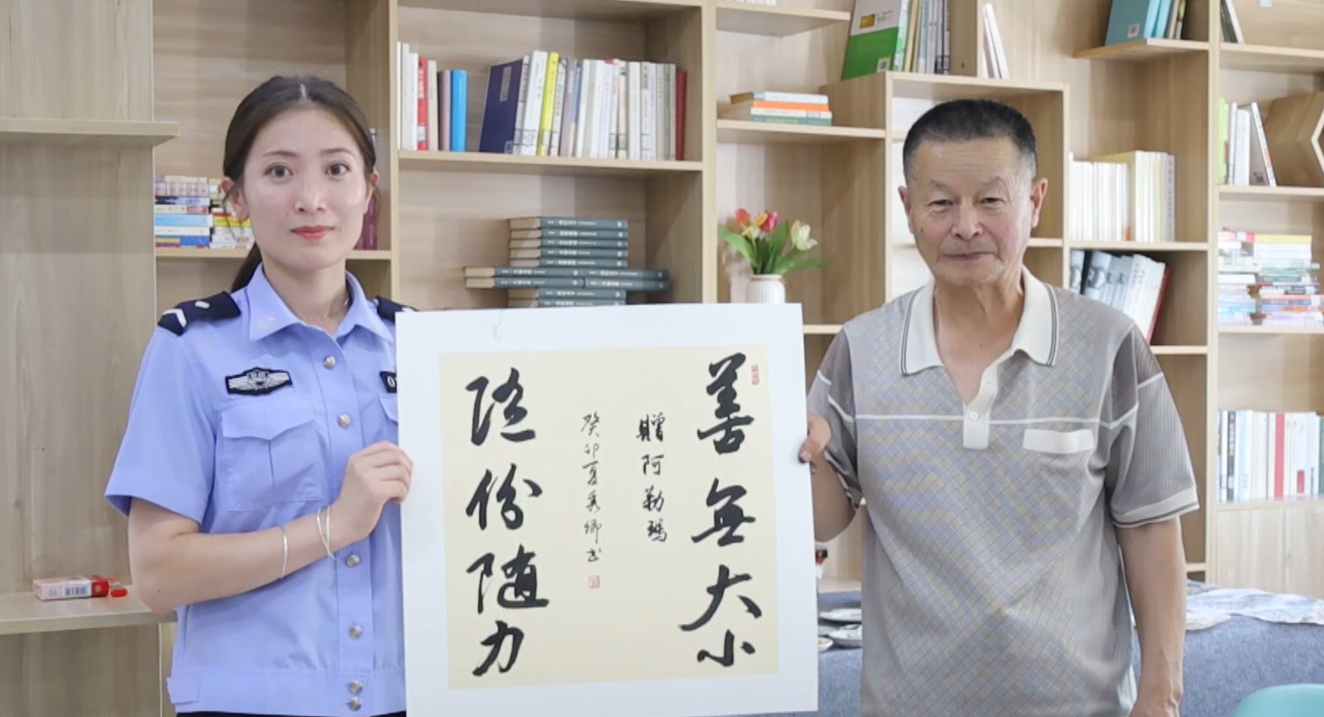 阿勒泰新闻网-阿勒泰地区融媒体中心(实习记者 阿丽娜·阿依登 通讯员 周宝安)8月2日,地区文化馆(美术馆)、书法家协会联合“我们的中国梦·文化进万家”石榴籽文化小分队走进阿勒泰市公安局团结路派出所,开展“警民一家亲”书画交流活动。