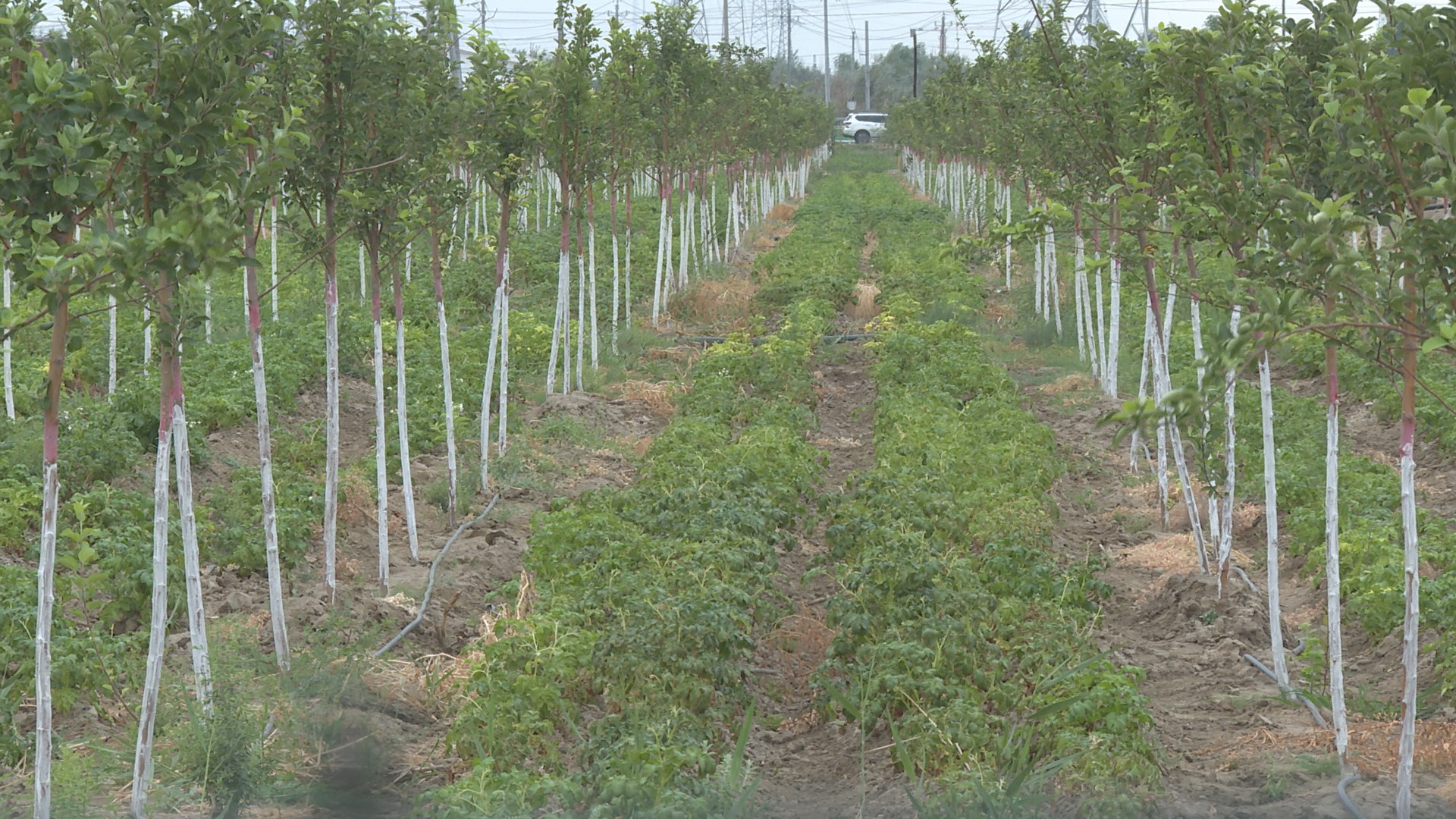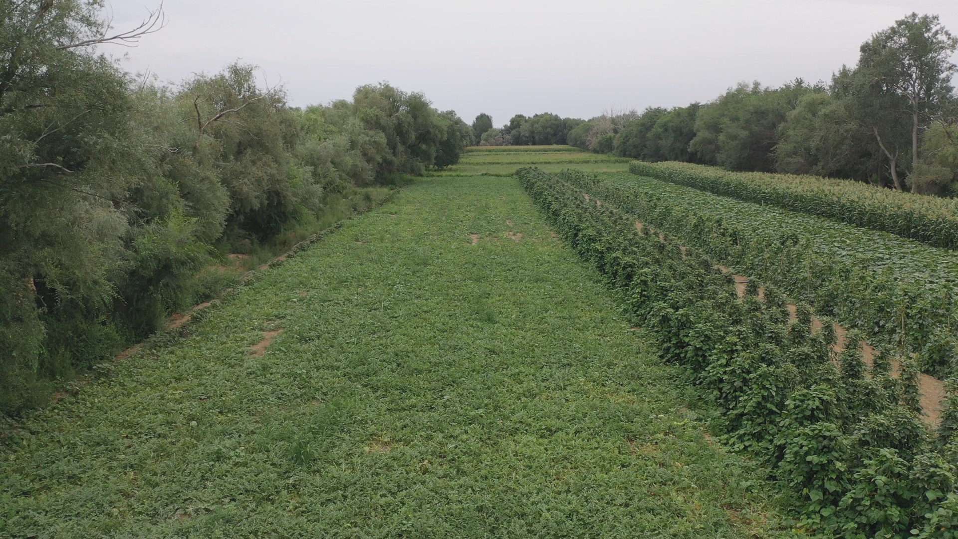 8月15日,在福海县喀拉玛盖镇喀拉苏村,一排排苗木整齐划一,枝繁叶茂,与村庄交错在一起,为村里增添了不少绿色。村民吾木提别克·夏马尔正忙着给林带浇水,并为已经开花的土豆苗垄沟。福海县喀拉玛盖镇喀拉苏村党支部书记吾拉尔别克·塔拉甫说:“今年,我们引导村民在林带里面种植土豆,同时对林带进行管理,不仅让村民有了收入,村庄绿化也有了成效,为美丽乡村建设打下基础。”