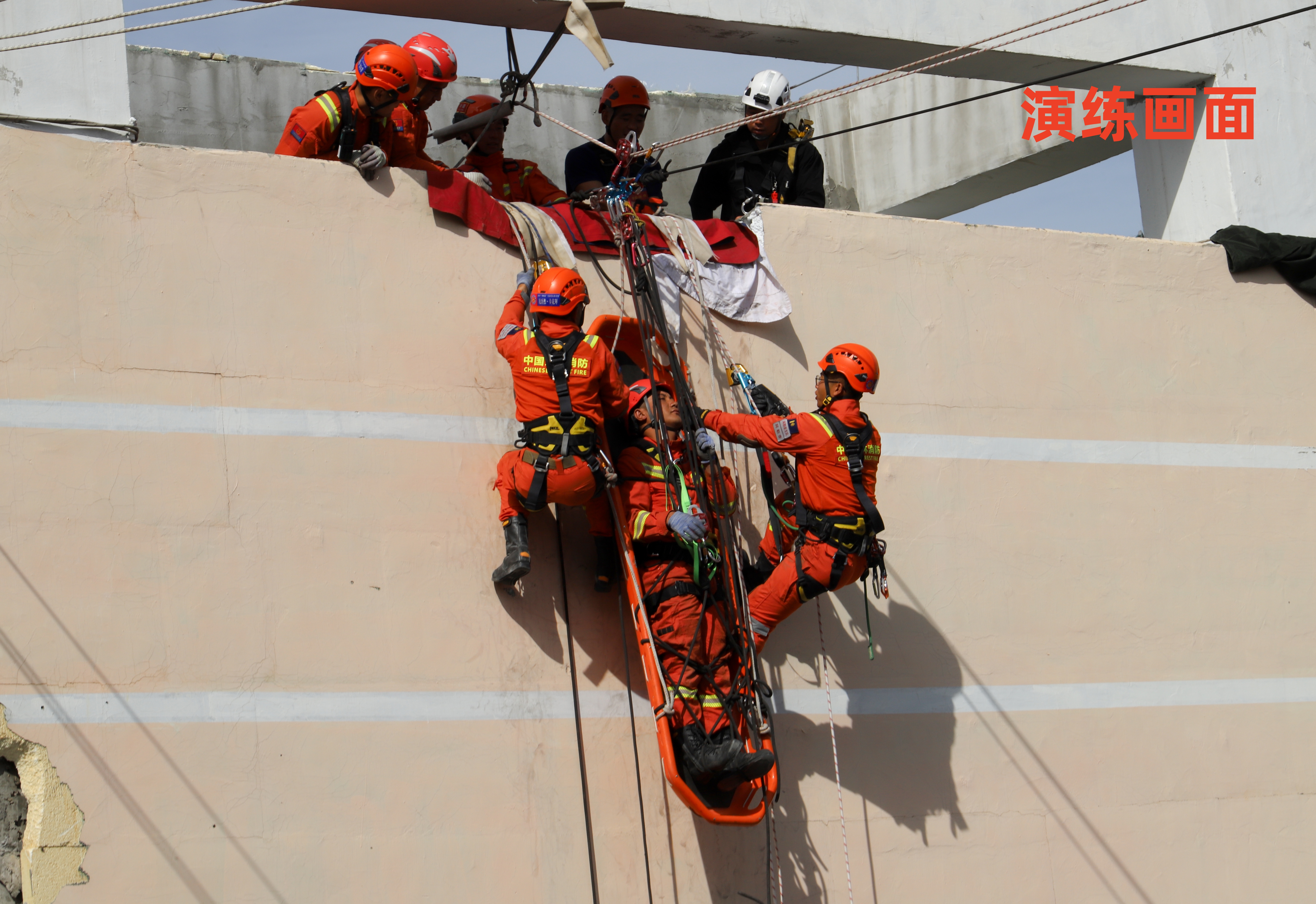 训练中,该支队按照“先易后难、先分后合、先地面后空中”的顺序,对“上升下降、固定点攀登、绳索转换、一对一救援”等个人绳索救援技术及“担架过岩角、空中入担架、斜向、陡坡、T型、V型、垂直提拉”等团队绳索救援技术进行训练。